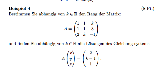 Bestimmen Sie abhängig von k Element von R den Rang der Matrix ... nur 3*4- Matrix: unten. | Mathelounge